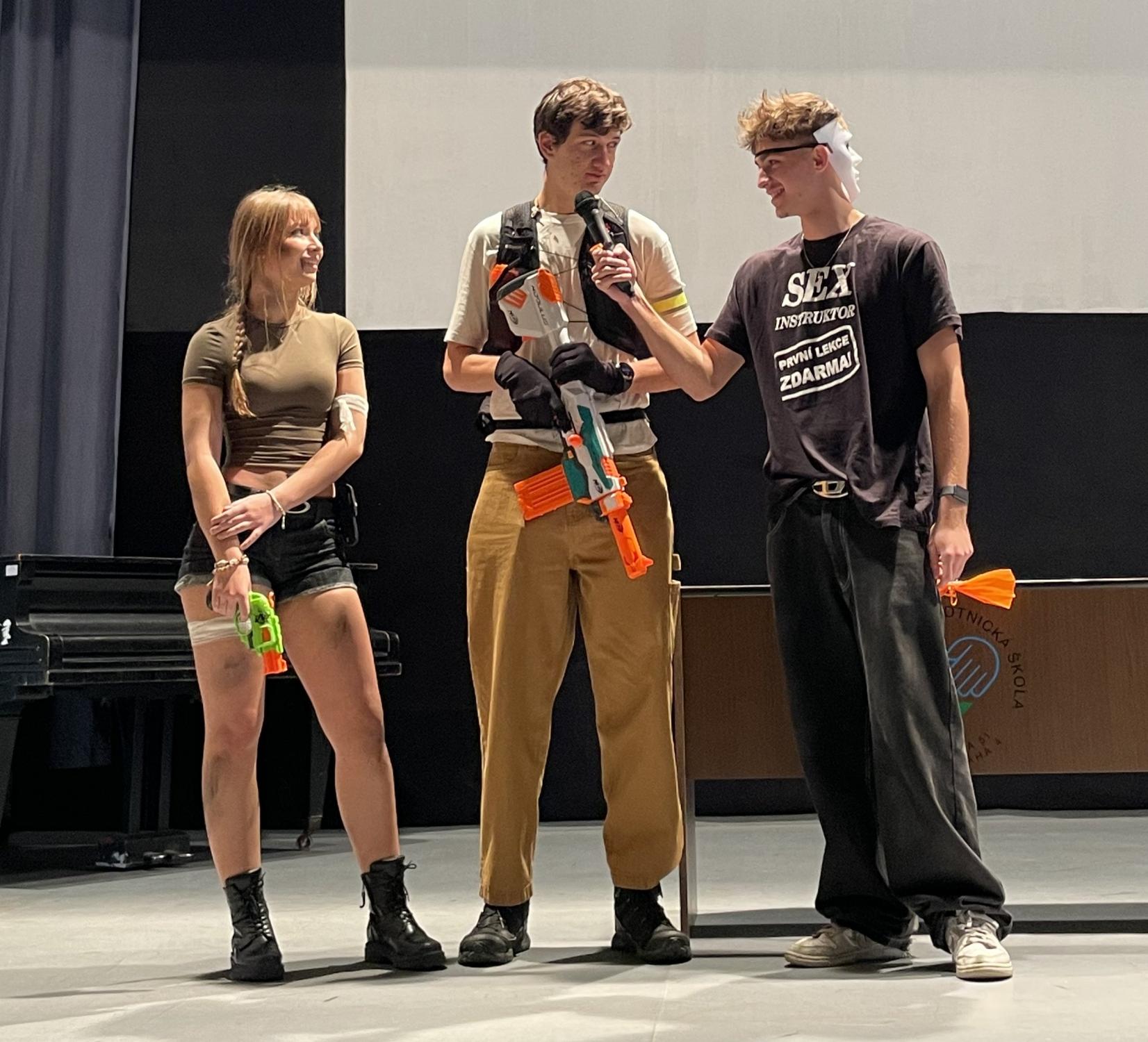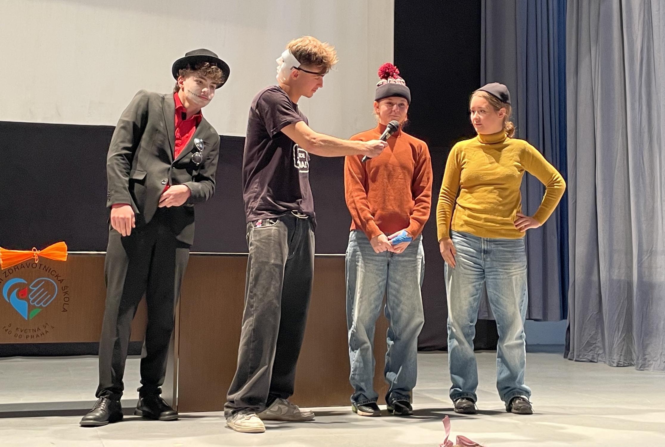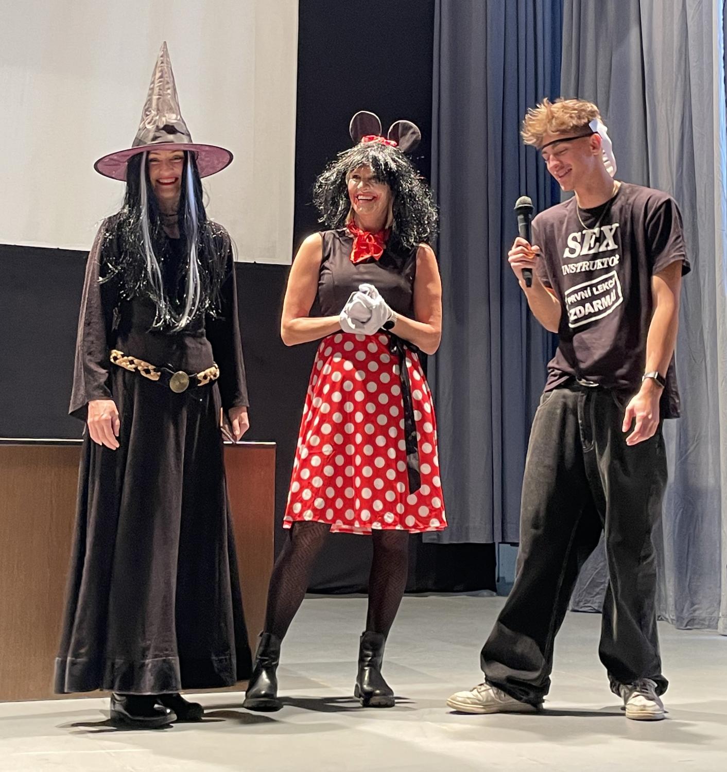 Dne 31. 10. 2025 na naší škole proběhla soutěž o nejkrásnější (nejstrašidelnější) halloweenskou masku. Organizaci měli na starosti žáci 4.MA a do kinosálu pozvali žáky celé školy. O soutěž byl nečekaně velký zájem a žáci se do kinosálu skoro nevešli. Během velké přestávky se představilo několik masek, spolužáci jim dávali hlasy do černé urny s křížem. Nejvíce hlasů získali Mr. Krabs (4.KA), Krysáci (4.BA) a Zásahová služba (2.LA). Bodovala i paní profesorka Alena Štefková, ale svých hlasů se vzdala ve prospěch žáků. Nejlepší masky získaly poukázky do bufetu pana Šikuly v hodnotě 100 Kč.