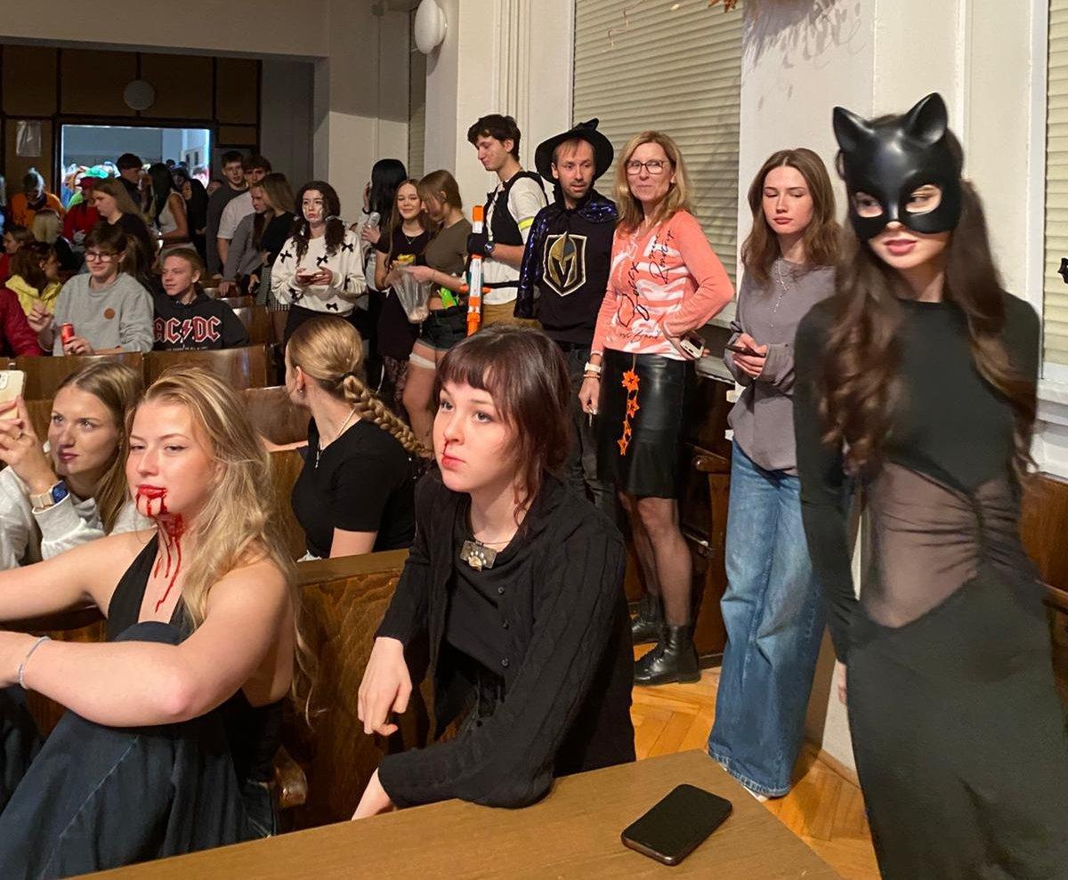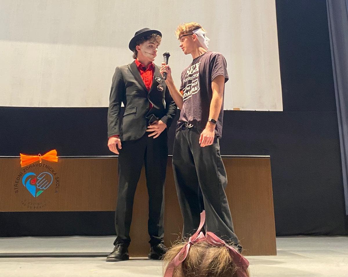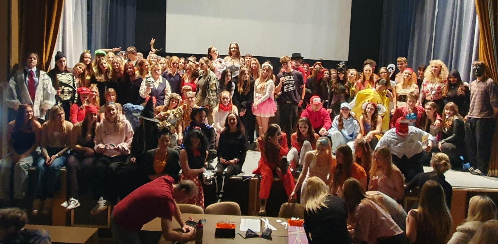 Dne 31. 10. 2025 na naší škole proběhla soutěž o nejkrásnější (nejstrašidelnější) halloweenskou masku. Organizaci měli na starosti žáci 4.MA a do kinosálu pozvali žáky celé školy. O soutěž byl nečekaně velký zájem a žáci se do kinosálu skoro nevešli. Během velké přestávky se představilo několik masek, spolužáci jim dávali hlasy do černé urny s křížem. Nejvíce hlasů získali Mr. Krabs (4.KA), Krysáci (4.BA) a Zásahová služba (2.LA). Bodovala i paní profesorka Alena Štefková, ale svých hlasů se vzdala ve prospěch žáků. Nejlepší masky získaly poukázky do bufetu pana Šikuly v hodnotě 100 Kč.