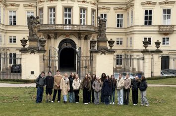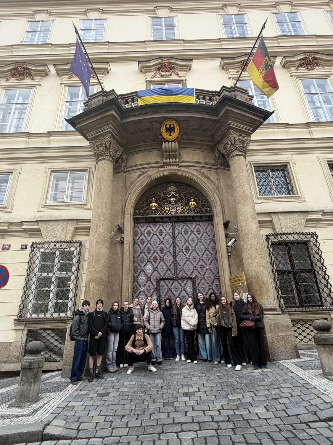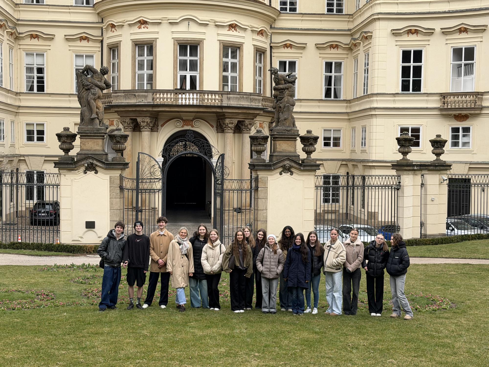 V rámci výuky německého jazyka navštívila naše třída 2.LA dne 30. 3. 2026 Německé velvyslanectví v Praze. Dozvěděli jsme se mnoho zajímavých informací o historii budovy Lobkovického paláce a o úkolech zahraničního zastoupení v České republice. Na závěr jsme mohli zhlédnout film o událostech v roce 1989, které předcházely pádu Berlínské zdi a následnému sjednocení Německa.