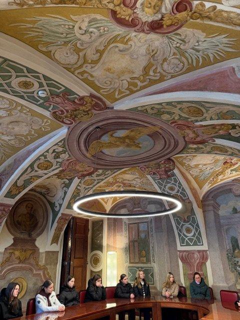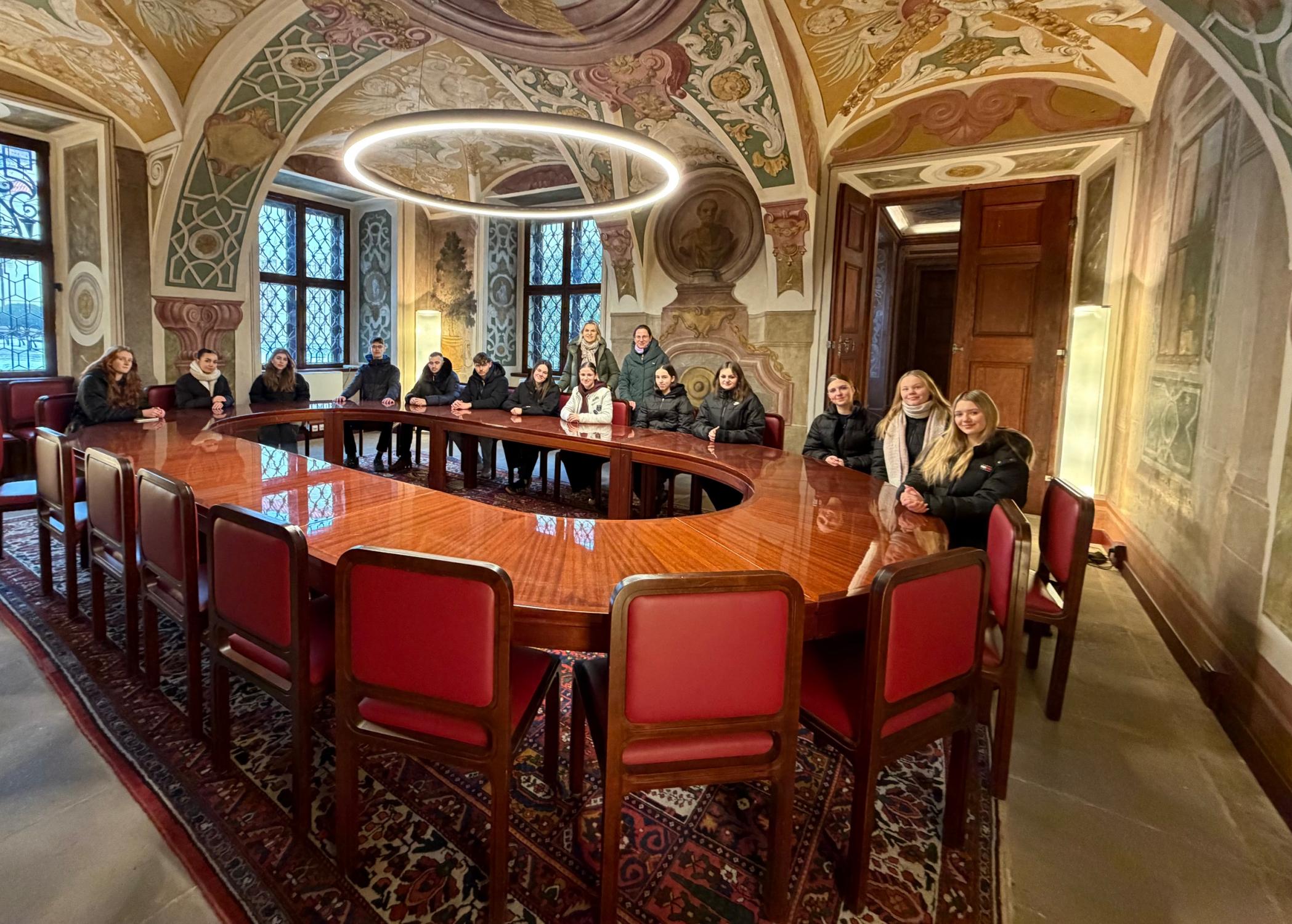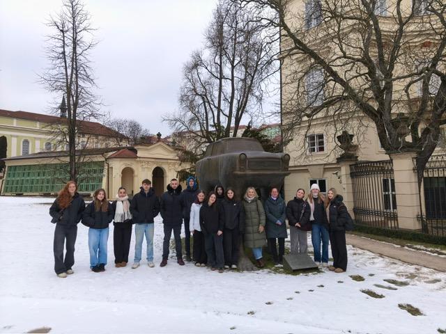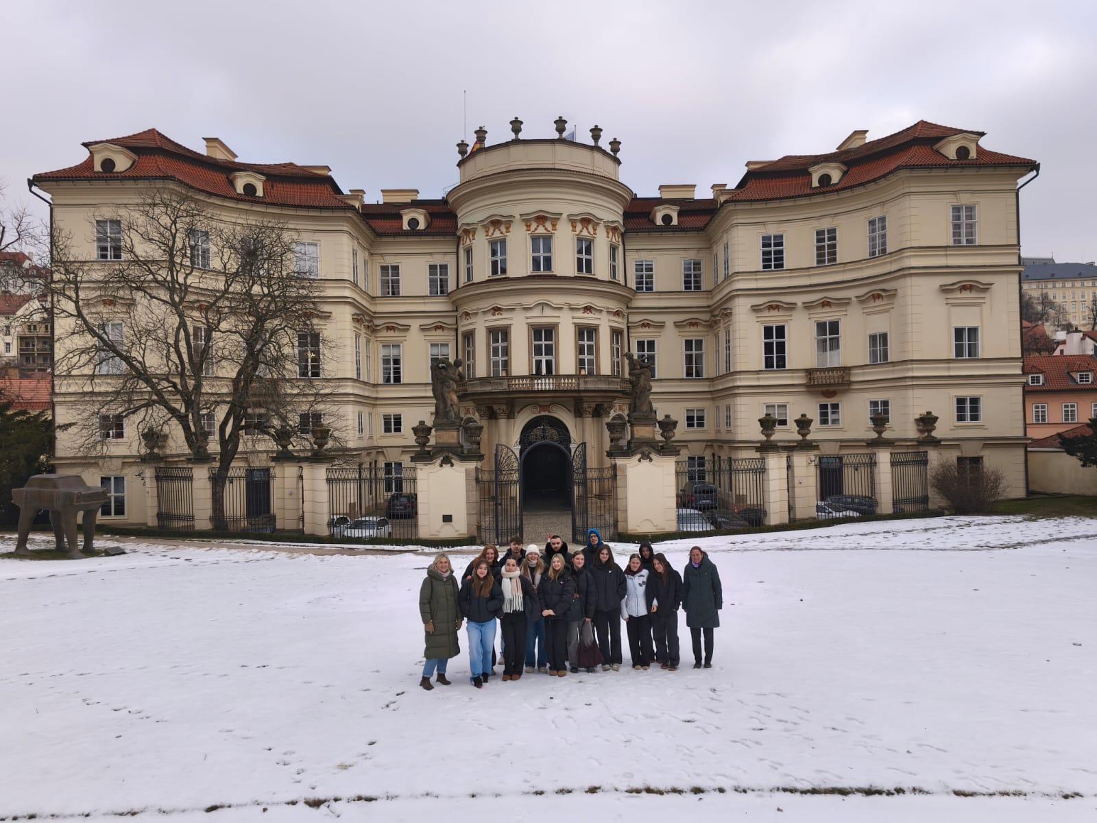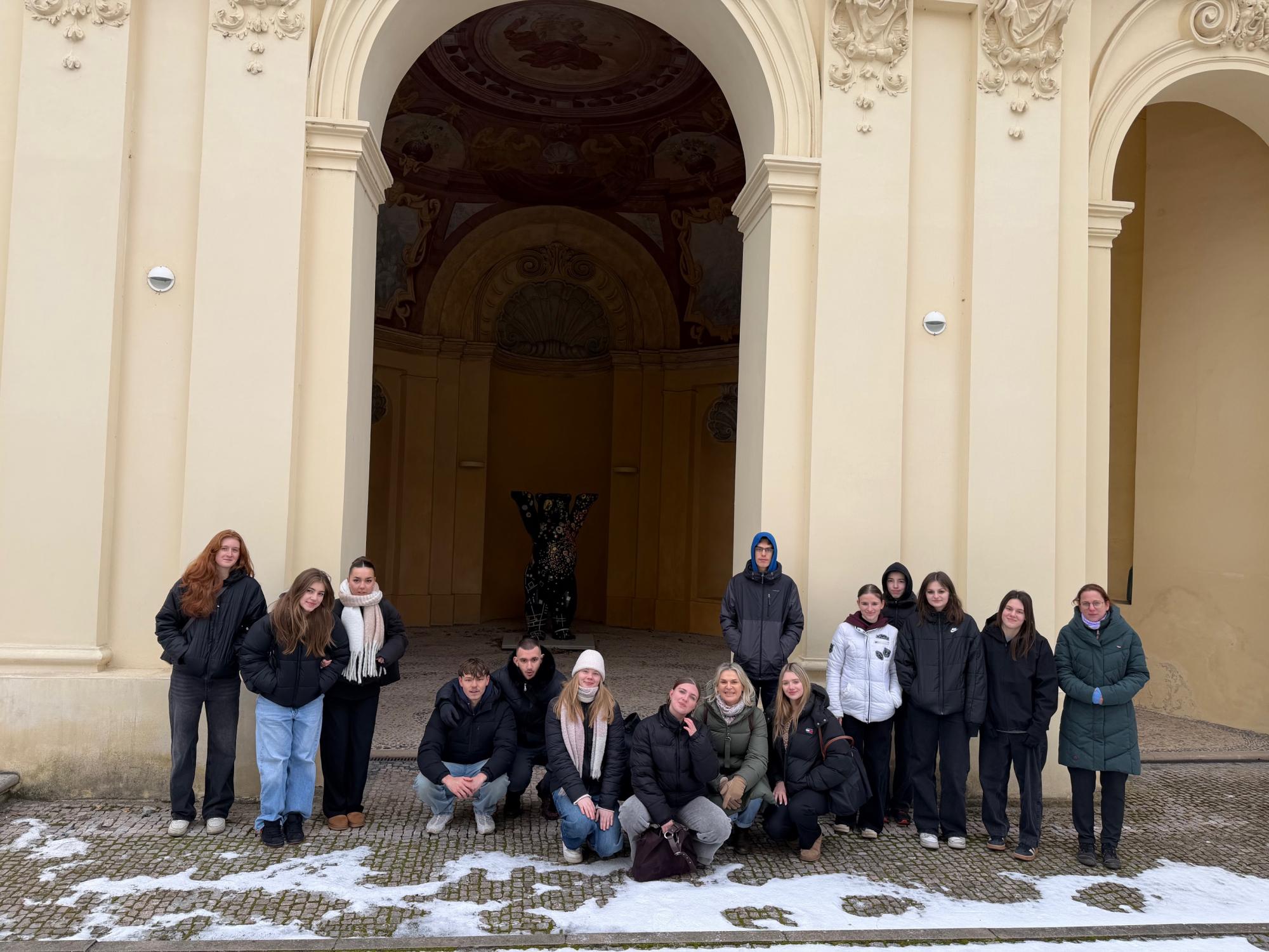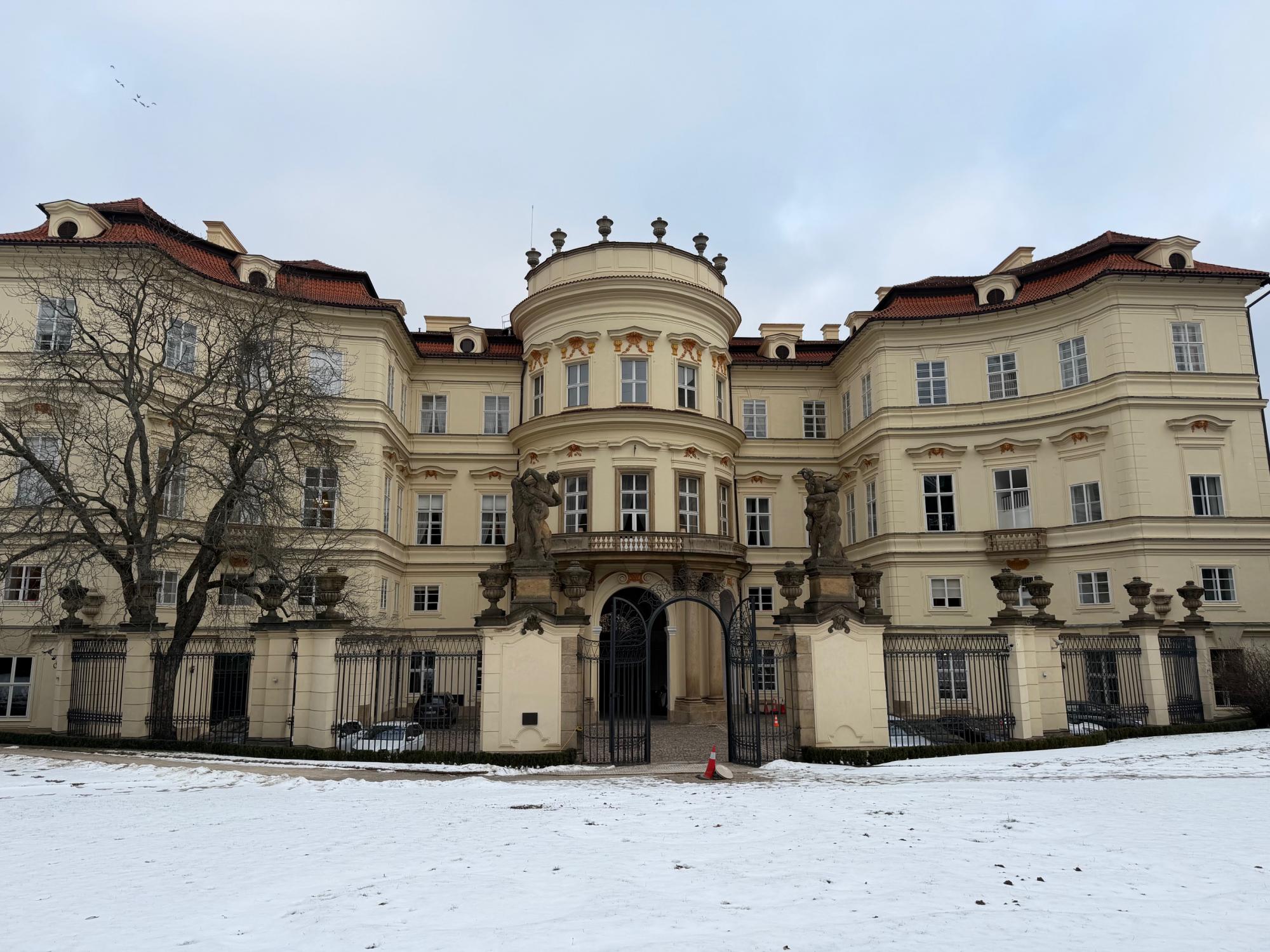 Naše třída 2.BA navštívila v rámci výuky německého jazyka dne 21. 1. 2026 Německé velvyslanectví v Praze. Z výkladu jsme se dozvěděli nejen mnoho zajímavých informací o historii budovy Lobkovického paláce, ve kterém ambasáda sídlí od roku 1974, ale také o úkolech německého zastoupení v České republice. Na závěr jsme mohli zhlédnout film o událostech v roce 1989, které předcházely pádu Berlínské zdi a následnému sjednocení Německa.